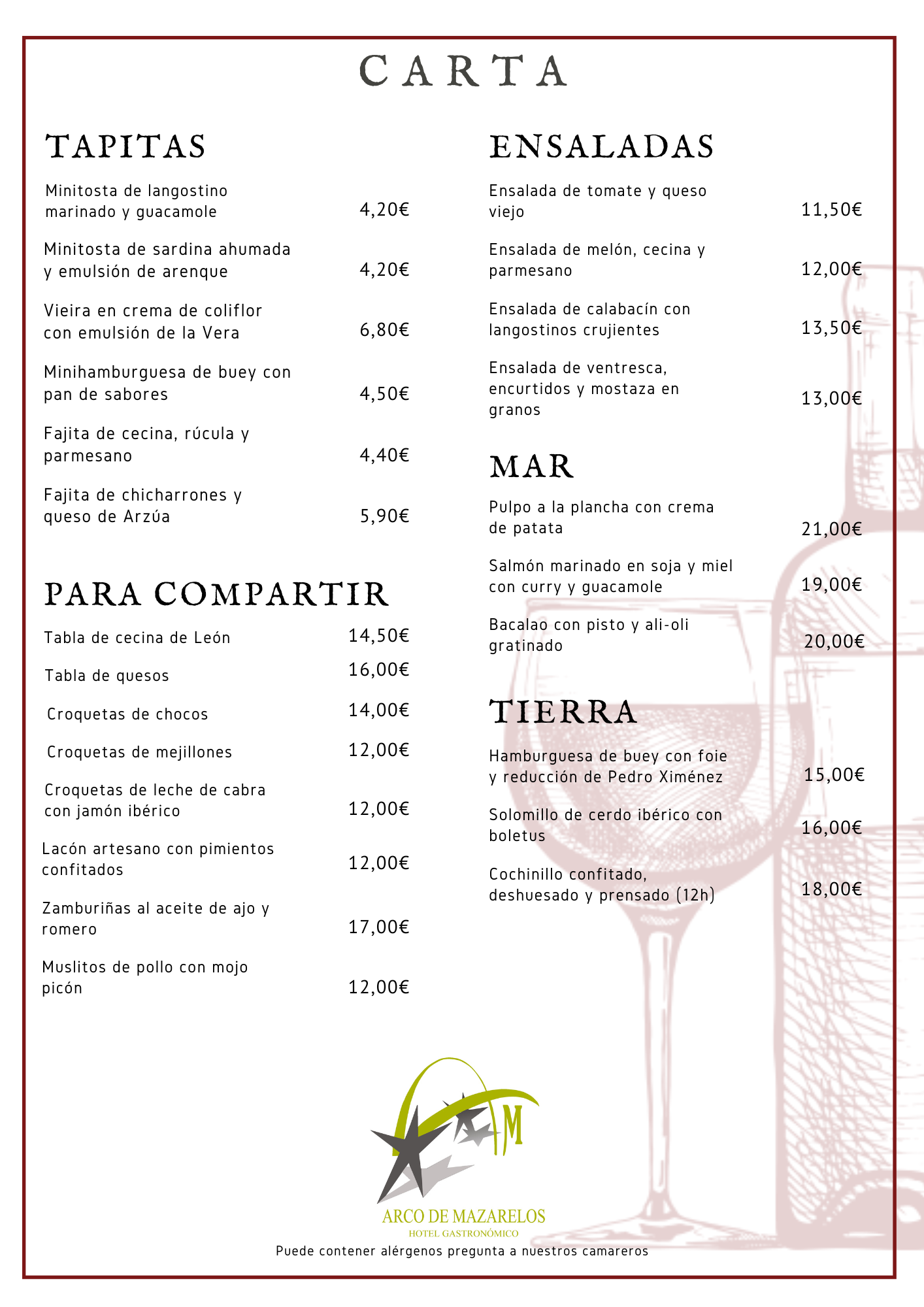 Carta Aquí está nuestra carta!! (La carta ha podido sufrir modificaciones, consulta siempre en nuestro establecimiento)